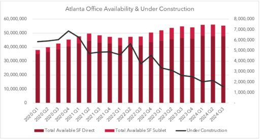 It will take a lot more time for office market conditions to reach a healthy balance between supply and demand, but Q3 of 2024 proved to be a step in the right direction. It’s still too early to declare the beginning of an office market recovery, but Atlanta possesses the right ingredients (office job growth, net in-migration, economic diversity, etc.) for conditions to improve, and perhaps more significantly as 2025 approaches.