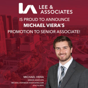November 30, 2022 (COLUMBUS, OH) – Lee & Associates, the largest broker-owned commercial real estate firm in North America, announced today the promotion of Michael Viera to Senior Associate in the Columbus, Ohio office.