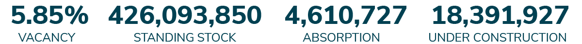 The regional vacancy rate for industrial product rose in Q2 by 40 basis points to 5.85%. Year-over-year, the vacancy rate has declined by 90 bps. Net absorption remained positive at 4.6 million SF. The market has nearly eclipsed 10 million SF in positive net at mid-year. Lease rates in the Lehigh Valley continue to rise as vacancy remains relatively low. Average Class A available space leases at approximately $5.75 per SF. Tenants in Central PA have yet to be subjected to dramatic rate increases with average asking rates for new Class A space hovering between $4.75/SF and $4.85/SF.