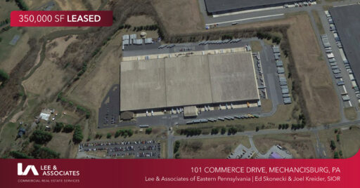 Pennsylvania—Lee & Associates, a national full-service commercial real estate firm has orchestrated the lease of approximately 350,000 square feet to complete the full lease-up of the property located at 101 Commerce Drive in Mechanicsburg, PA. Principals; Ed Skonecki, Joel Kreider, SIOR, and the team represented the property owner, an affiliate of New York Life Insurance Company, in the deal. The building was recently improved with new lighting, paint, and HVAC, an office refresh, and an addition of a 2nd circulation road to better accommodate a multi-tenant situation.
