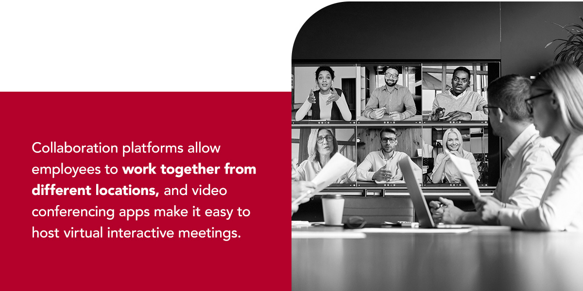 Additionally, collaboration platforms allow employees to work together from different locations, and video conferencing apps make it easy to host virtual interactive meetings.