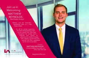Meet our new Real Estate Analyst, Matthew Reynolds! Matthew will be actively supporting our new Spartanburg office as they expand their client base throughout the Upstate region. Join us in welcoming Matthew to our team!
