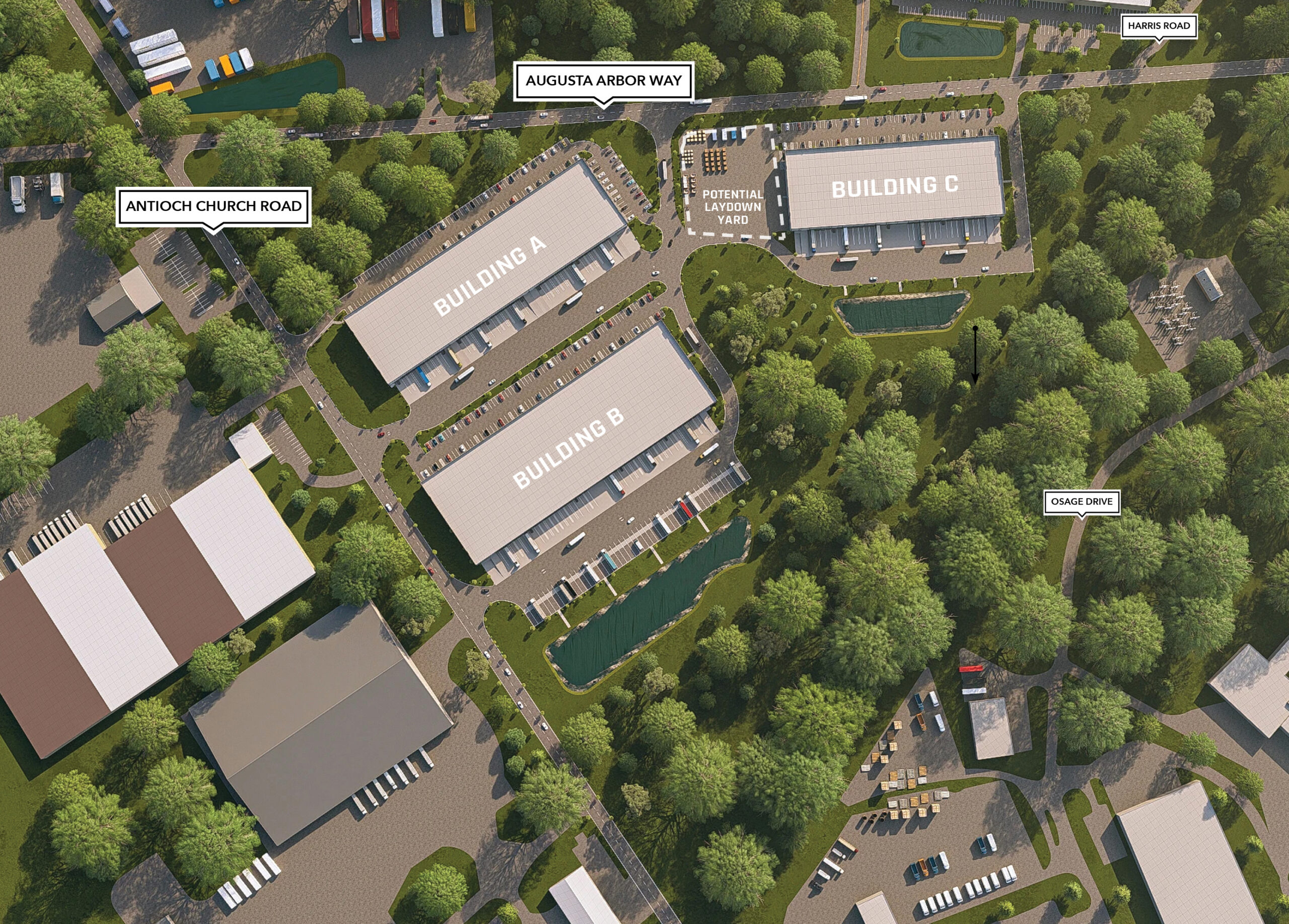 Blue Road Investments (BRI) has broken ground on a three-building, 346,680 SF industrial park located at the corner of Augusta Arbor Way and Antioch Church Road. “This will be one of the premier light industrial parks in all of Greenville/Spartanburg (GSP) with state-of-the-art specifications and functionality that will appeal to tenants ranging from 20,000 to 140,000 SF,” said Jeff Hackmeyer, co-founder and managing partner of Blue Road Investments. The project, named Augusta Arbor II, will be Blue Road’s second development in Greenville and will include three rear-load warehouses with sizes of 87,480 SF, 116,640 SF, and 142,560 SF. Each building will feature fully-reinforced 6” slabs, 32’ clear heights, ESFR sprinkler systems and 135’ truck courts with the largest building offering ample trailer parking.