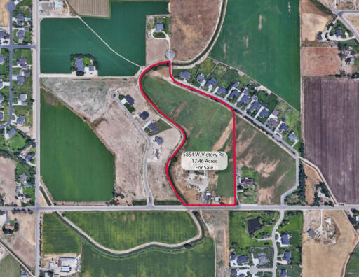 Lee & Associates is pleased to present 17.46 acres of residential development land for sale. Located on W. Victory Rd. less than 10 minutes away from the Nampa Airport, the Ford Idaho Center, and the Nampa Gateway Center shopping center. Currently zoned RUT but will be zoned Low Density Residential according to the City of Meridian Future Land Use map.