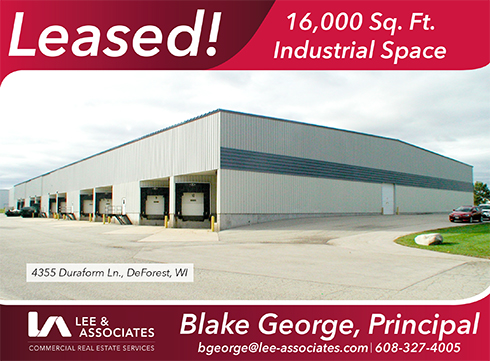 MADISON – Lee & Associates Madison announces the leasing of a 16,000 sq. ft. industrial space located at 4355 Duraform Ln. in DeForest, Wisconsin. Blake George of Lee & Associates Madison represented both the tenant and landlord in the transaction.