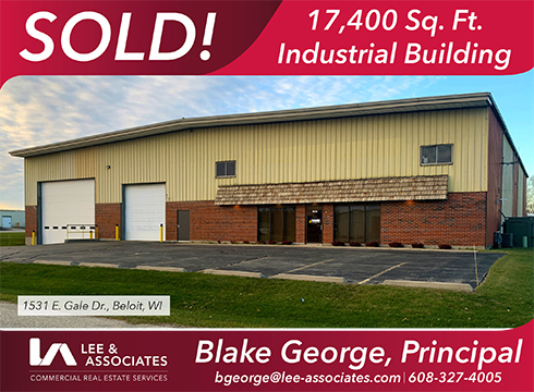 MADISON – Lee & Associates Madison announces the sale of a 17,400 sq. ft. industrial building located at 1531 East Gale Drive in Beloit, WI. Blake George of Lee & Associates Madison represented the seller in the transaction.