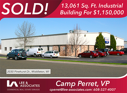 MADISON – Lee & Associates Madison announces the sale of a 13,061 sq. ft. industrial building located at 2030 Pinehurst Drive in Middleton, WI for 1,150,000. Camp Perret of Lee & Associates Madison represented the seller in the transaction.