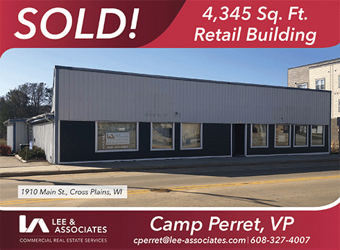 MADISON – Lee & Associates Madison announces the sale of a 4,345 sq. ft. retail building located at 1910 Main St. in Cross Plains, WI. Camp Perret of Lee & Associates Madison represented the seller in the transaction.