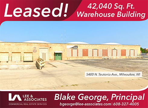 MADISON – Lee & Associates Madison announces the leasing of a 42,040 sq. ft. warehouse building located at 5400 N. Teutonia Ave. in Milwaukee, Wisconsin. Blake George of Lee & Associates Madison co-brokered the transaction with Corbin Blount of Lee & Associates Dallas/Fort Worth.