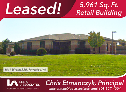 MADISON – Lee & Associates Madison announces the leasing of a 5,961 sq. ft. retail building located at 1611 Silvernail Road in Pewaukee, Wisconsin. Chris Etmanczyk of Lee & Associates Madison negotiated the lease in the transaction.