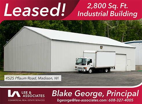 MADISON – Lee & Associates Madison announces the leasing of a 2,800 sq. ft. industrial building located at 4525 Pflaum Road in Madison, Wisconsin. Blake George of Lee & Associates Madison negotiated the lease in the transaction.