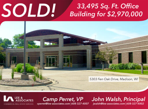 MADISON – Lee & Associates Madison announces the sale of a 33,495 sq. ft. office building for $2,970,000 located at 5303 Fen Oak Drive in Madison, Wisconsin. Camp Perret and John Walsh of Lee & Associates Madison represented both the buyer & seller in this transaction.