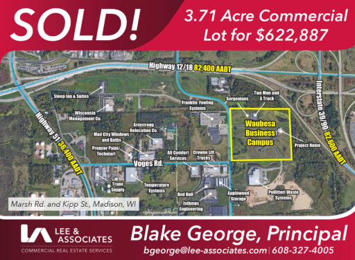 MADISON – Lee & Associates Madison announces the sale of a 3.71 acre commercial lot for $622,887 located in the Waubesa Business Campus on Kipp Street in Madison, Wisconsin. Blake George of Lee & Associates Madison represented the seller in this transaction.