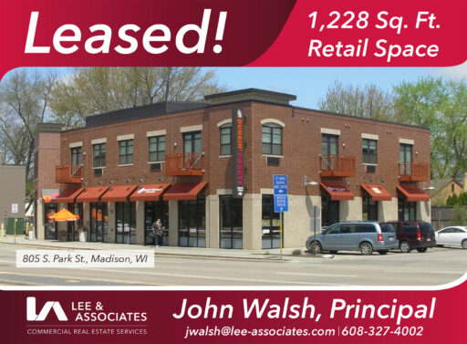 MADISON – Lee & Associates Madison announces the leasing of a 1,228 sq. ft. retail space to Verizon located in Madison, Wisconsin. John Walsh of Lee & Associates Madison negotiated the lease in the transaction.