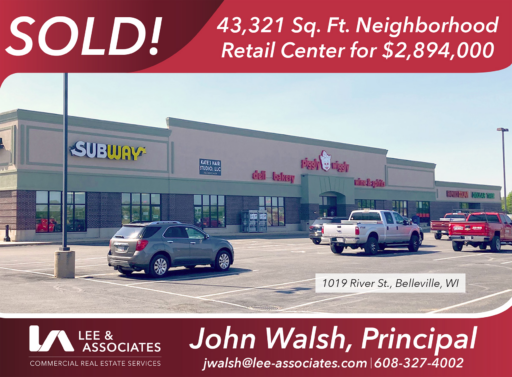 MADISON – Lee & Associates Madison announces the sale of a 43,321 sq. ft. neighborhood retail center for $2,894,000 located at 1019 River Street in Belleville, Wisconsin. John Walsh of Lee & Associates Madison represented the seller in this transaction.
