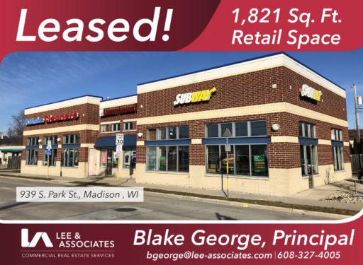 MADISON – Lee & Associates Madison announces the leasing of a 1,821 sq. ft. retail space located at 939 South Park Street in Madison, Wisconsin. Blake George of Lee & Associates Madison negotiated the lease in the transaction.