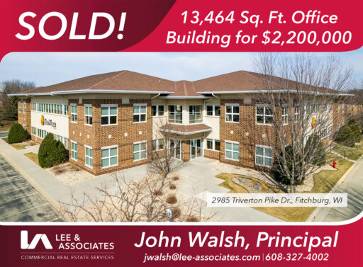MADISON – Lee & Associates Madison announces the sale of a 13,464 sq. ft. office building located at 2985 Triverton Pike Drive in Fitchburg, Wisconsin. The Office building sold for a total of $2,200,000. John Walsh of Lee & Associates Madison negotiated the sale in the transaction.