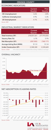 The overall vacancy rate at the end of the first half was 6.1%, the highest since 2012 when rents averaged $0.64 per SF, compared to the current average of $1.53 per SF triple net.