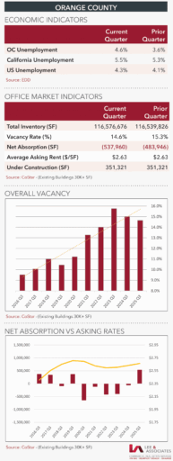 Despite its muted office-using payroll growth, Orange County office space continues to outperform many of its urban peers. Since 2023 there have been 1,432,179 SF of net absorption and vacancy has fallen from a record 15.7% to 14.6% in the last two years while, nationally, vacancy has been on the rise.