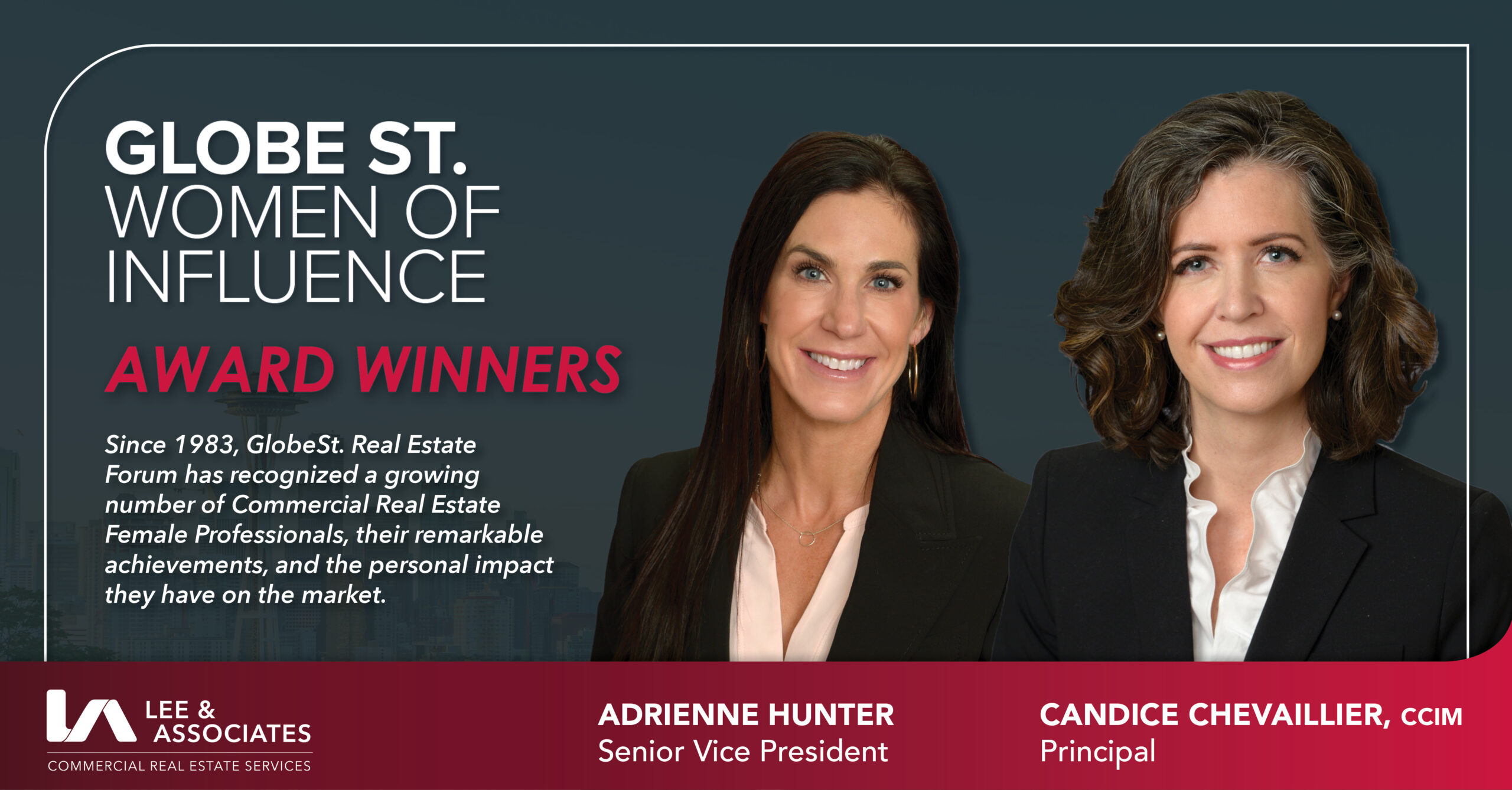 Lee & Associates' Principal, Candice Chevaillier and Senior Vice President, Adrienne Hunter have been named among GlobeSt. 2023 Women of Influence honorees!