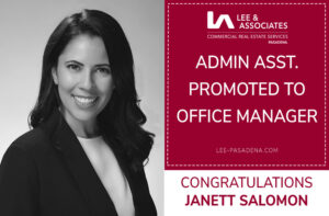The Lee & Associates – Pasadena office has recently promoted Janett Salomon to the position of Office Manager effective December 2021.