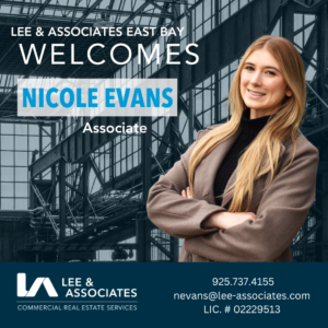 On behalf of the shareholders of Lee & Associates – East Bay, Inc., we are very happy to welcome Nicole Evans as a new Associate to the Pleasanton office.