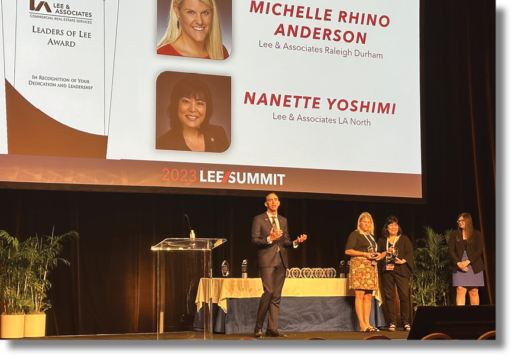 Michelle Rhino Anderson, the Chief Operating Officer and Principal for Lee & Associates Raleigh-Durham, was also honored at the event. Anderson received the esteemed Leader of Lee Award, recognizing her dedication and exceptional leadership that has contributed to the success of the Raleigh office and the Lee network.