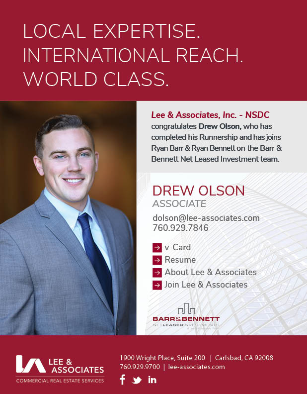 Lee & Associates, Inc. – NSDC congratulates Drew Olson, who has completed his Runnership and joins Ryan Barr & Ryan Bennett on the Barr & Bennett Net Leased Investment team.