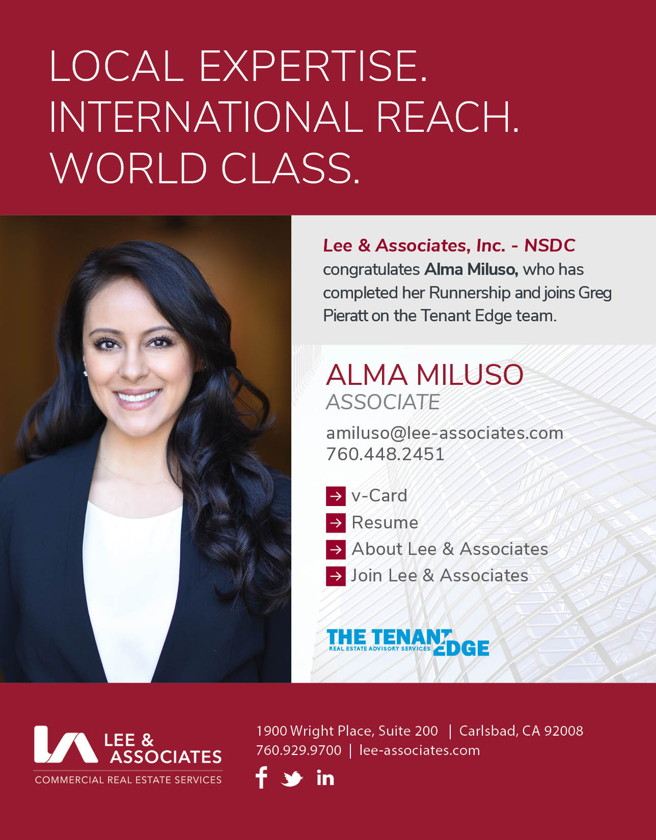 Lee & Associates, Inc. – NSDC congratulates Alma Miluso, who has completed her Runnership and joins Greg Pieratt on the Tenant Edge team.