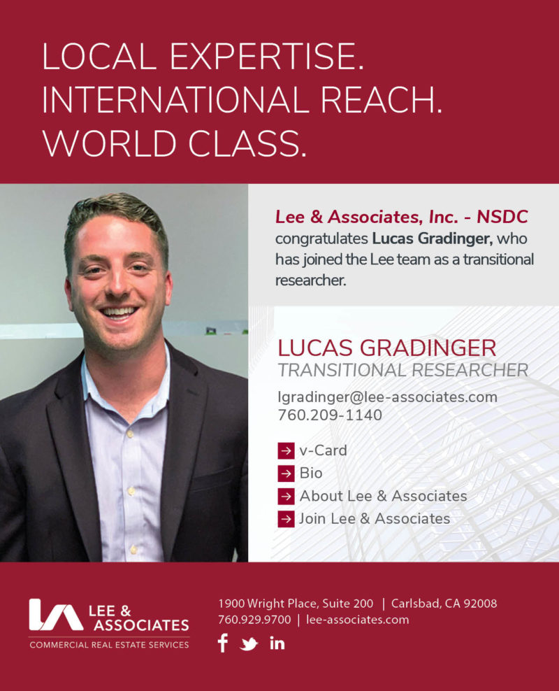 Lee & Associates, Inc. – NSDC congratulates Lucas Gradinger, who has joined the Lee team as a transitional researcher.