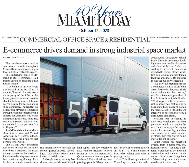 Miami Today Discusses E-Commerce and Industrial Market with Lee & Associates South Florida President, Matthew Rotolante, SIOR, CCIM